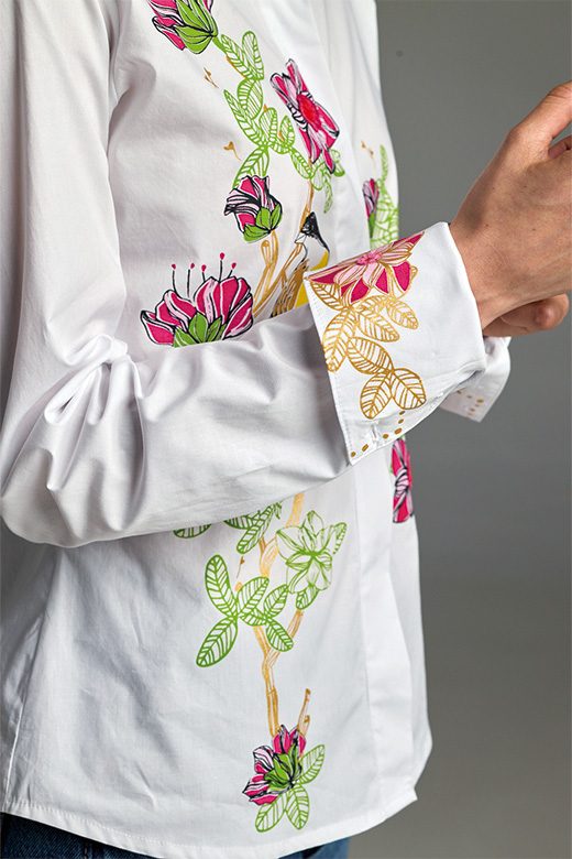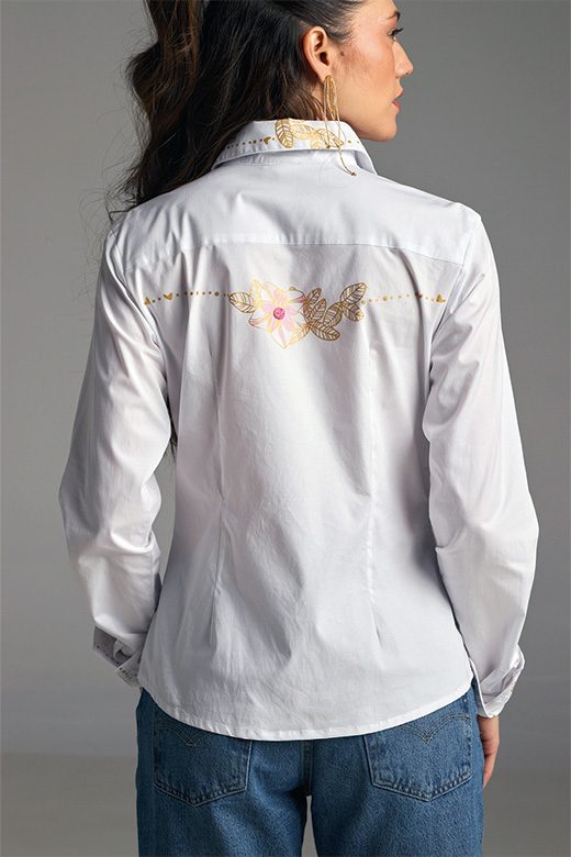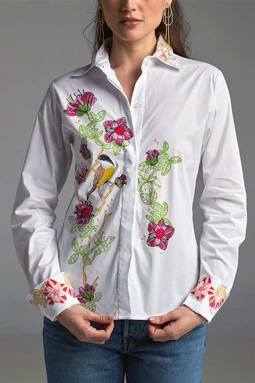 La camisa ALMENDRA es una pieza clásica y siempre vigente. Su diseño único, adornado con la flor de almendra, te desea buena suerte y prosperidad. Es un recordatorio de que tus sueños, tanto los activos como los que están en pausa, merecen abundancia y exuberancia.