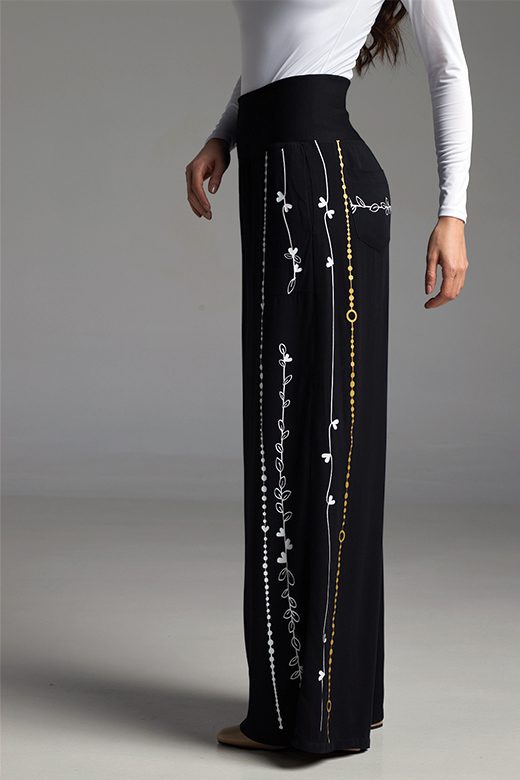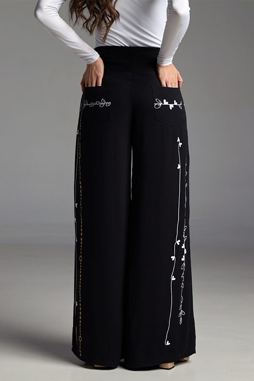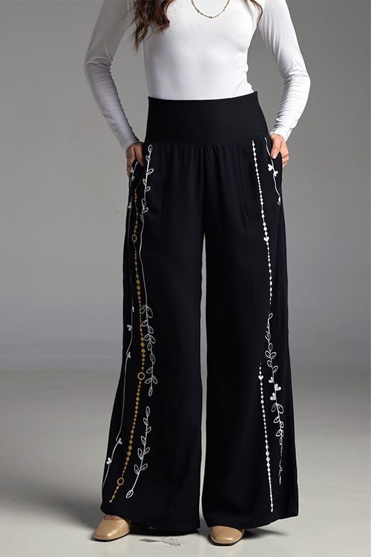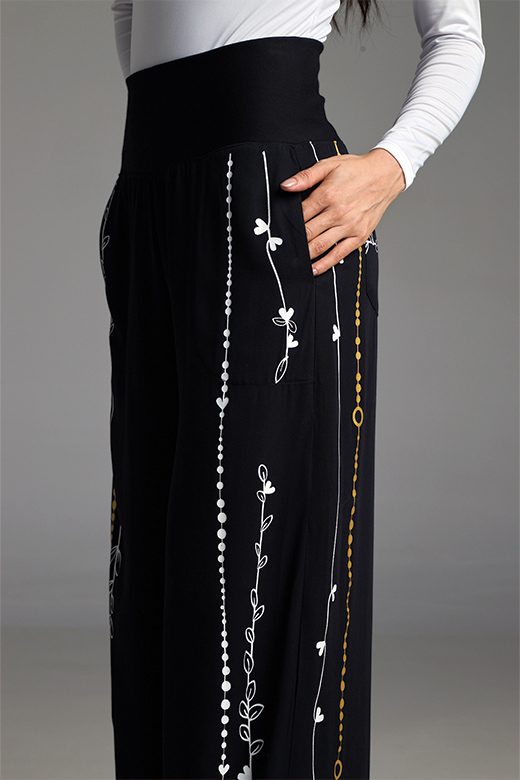 Sumérgete en la onda boho-chic con los PANTALONES LIANA. Su corte de bota recta y prácticos bolsillos laterales y traseros los convierten en la pieza fundamental para crear looks llenos de estilo. La banda en la cintura añade un toque moderno y cómodo. ¡Deja volar tu imaginación combinándolos con tus blusas favoritas o atrévete a un total look TALLER CROQUIS para una declaración de personalidad! Confeccionados en suave rayón, con detalles en una mezcla elástica para un ajuste perfecto.